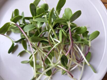 Les micro-pousses sont des graines qui sont mises en terre et seulement après quelques jours de croissance on peut percevoir les premiers cotylédons qui deviendront les 2 premières feuilles de la plante. On les laisse croitre entre 7 et 10 jours pour qu’elles atteignent quelques pouces de hauteur selon la variété et par la suite on peut les récolter pourles consommer.