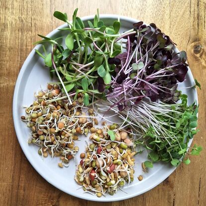 Riches en protéines et en fibres alimentaires, les pousses de pois mange tout contribuent à la santé des yeux puisqu’elles constituent une bonne source de lutéine et de zéaxanthine. Elles regorgent de vitamines C et K. Les pois germés contiennent aussi plusieurs minéraux (fer, manganèse, cuivre, phosphore, magnésium, zinc) ainsi que les vitamines B1, B2, B3, B6 et B9. Les pousses de pois sont tendres et croquantes.