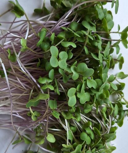 Riche en fibre, en lipide et minéraux, le radis offre une bonne source de chlorophylle, riches en antioxydants. Ils stimulent la fonction hépatique et la vésicule biliaire, désintoxique le foie et draine les reins, décongestionne (sinus et bronches), nettoie le tube digestif. Vitamines: A, B1, B2, C, calcium, soufre, phosphore, potassium, iode et fer.